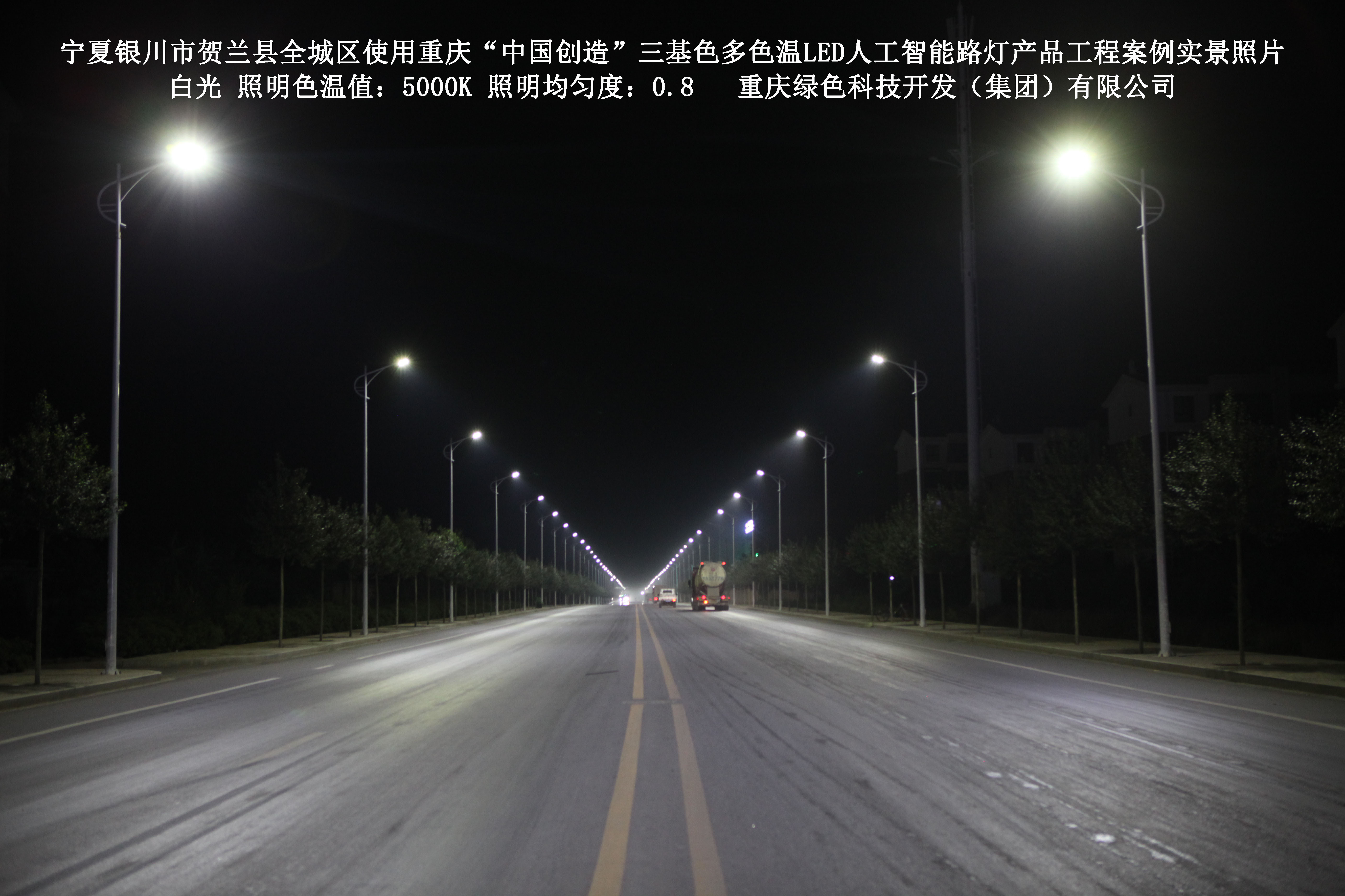 2017年12月,寧夏銀川市賀蘭縣城市管理綜合執(zhí)法局,使用了我司研發(fā)制造的重慶“中國創(chuàng)造”三基色多色溫LED人工智能路燈6348盞,對全城區(qū)實施了綠色照明科技節(jié)能改造工程,該工程已全面竣工。工程實施后,極大地提高了賀蘭縣全城區(qū)城市照明清晰度、燈光均勻度、舒適度。通過智能終端實現(xiàn)單燈感知、線纜防盜報警,與原高壓鈉燈相比,節(jié)能率60%以上,有效解決了關(guān)閉控制回路或間隔關(guān)燈方式造成的照明暗區(qū),確保行人和車輛通行的安全,實現(xiàn)城市路燈照明系統(tǒng)的智能化管理,推進了智慧城市建設(shè)。