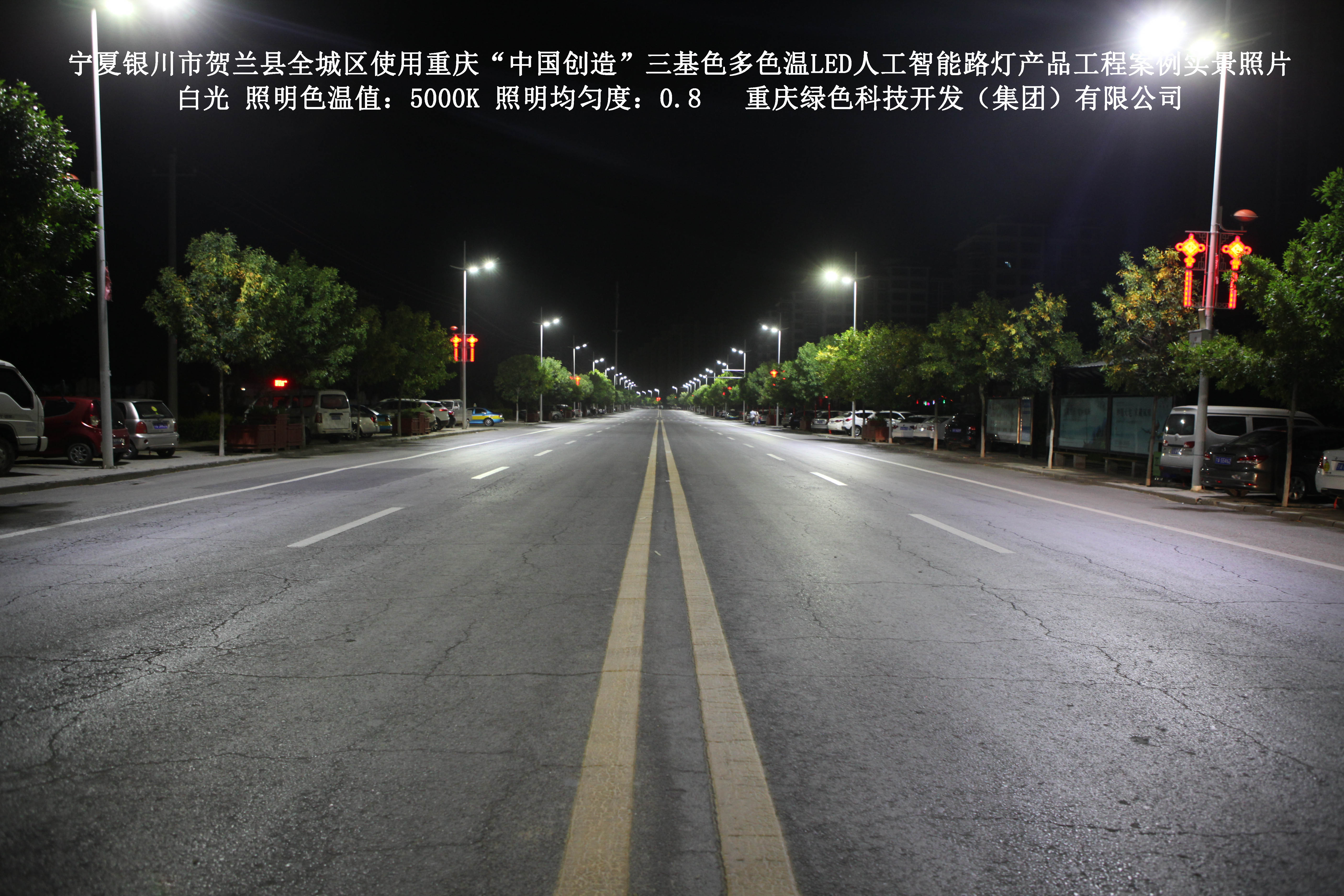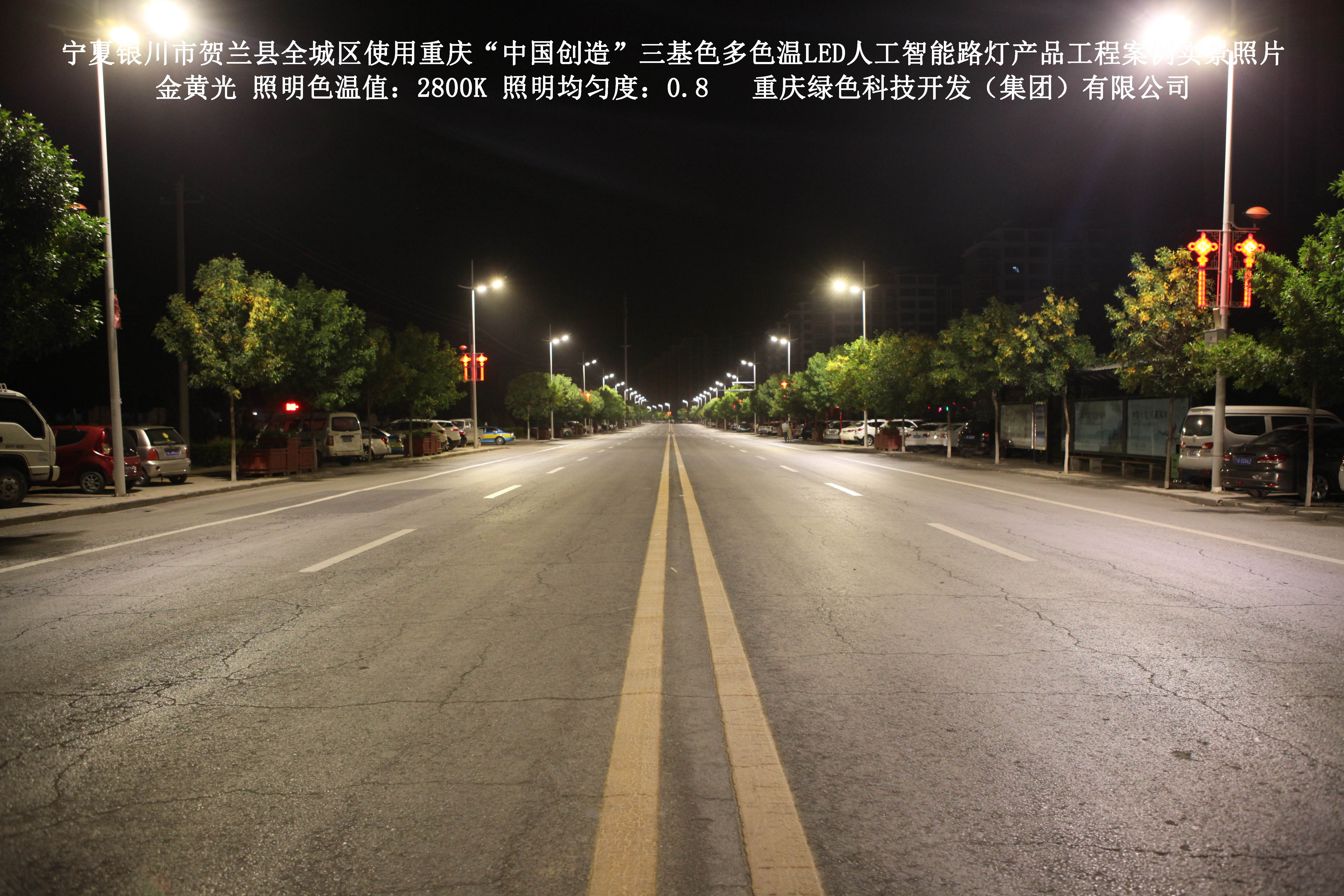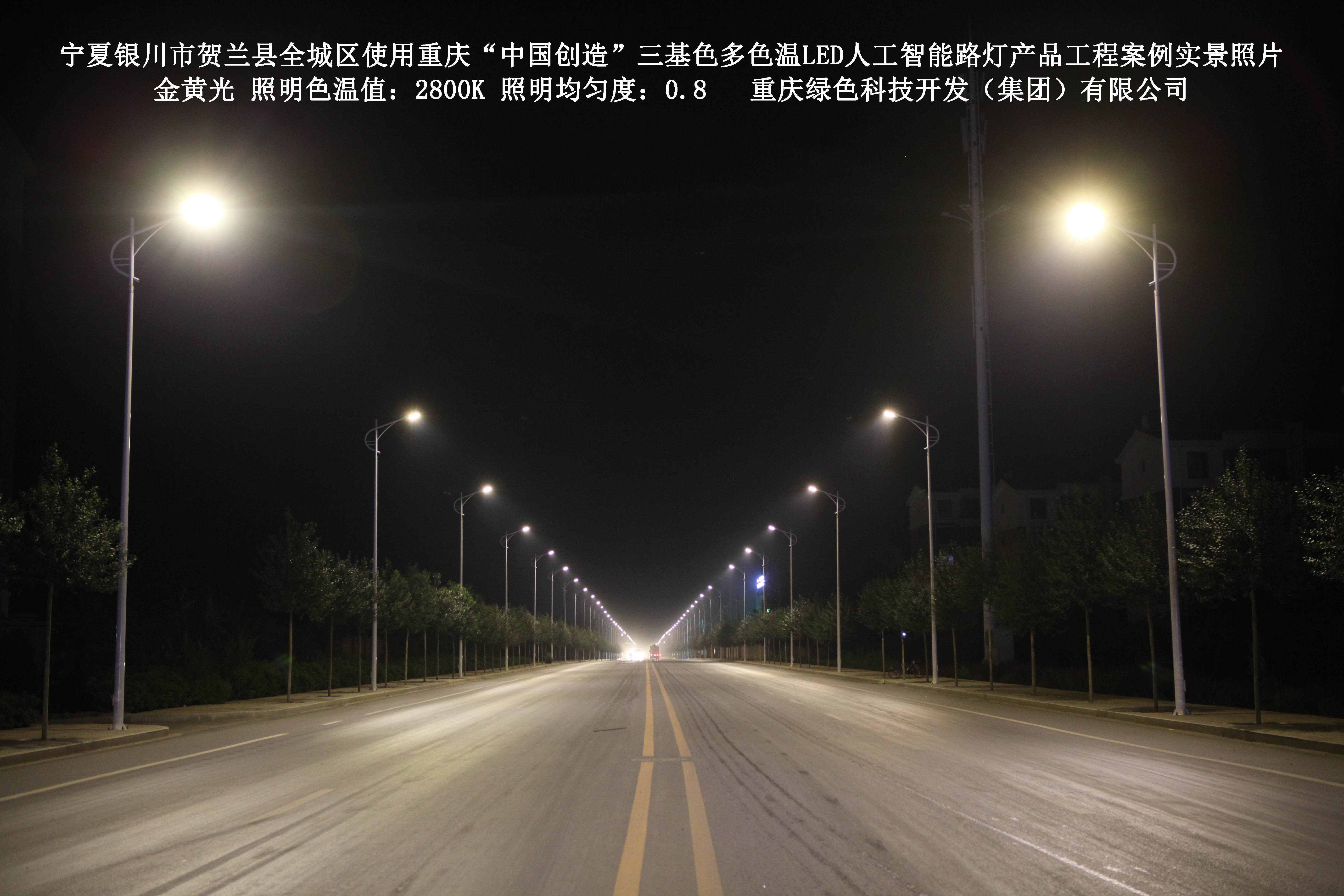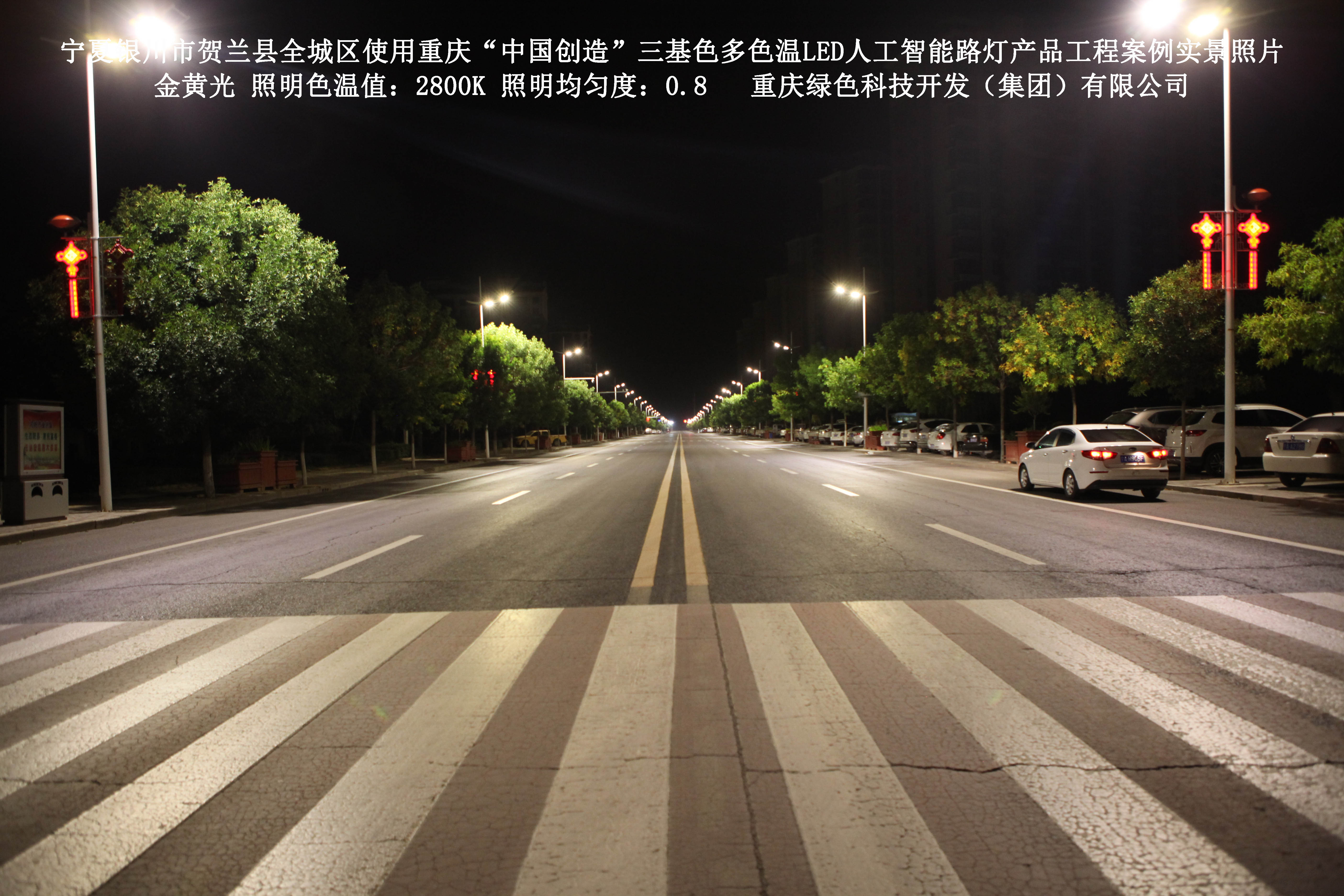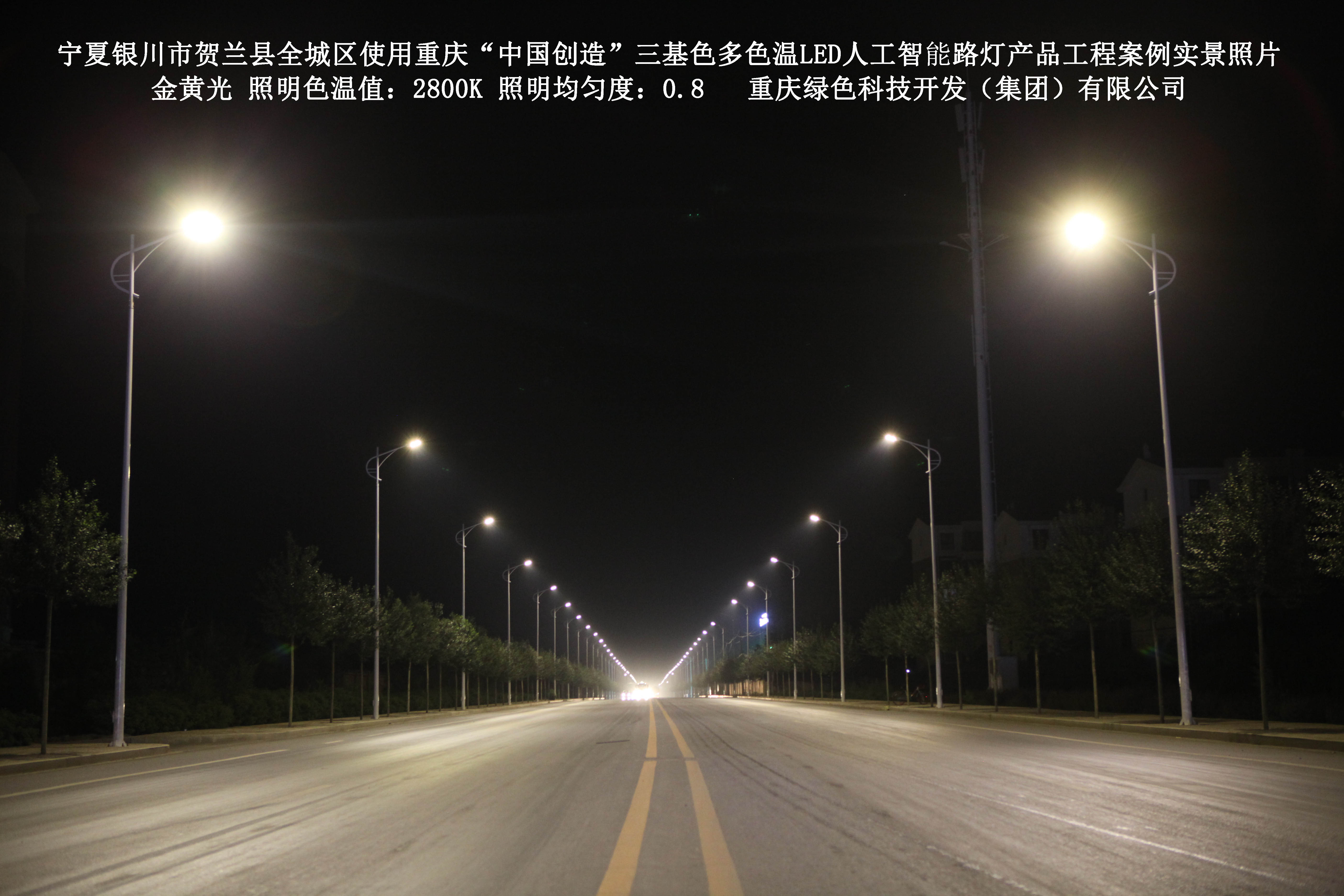 寧夏銀川市賀蘭縣全城區(qū)使用我司研造的重慶“中國創(chuàng)造”三基色多色溫
