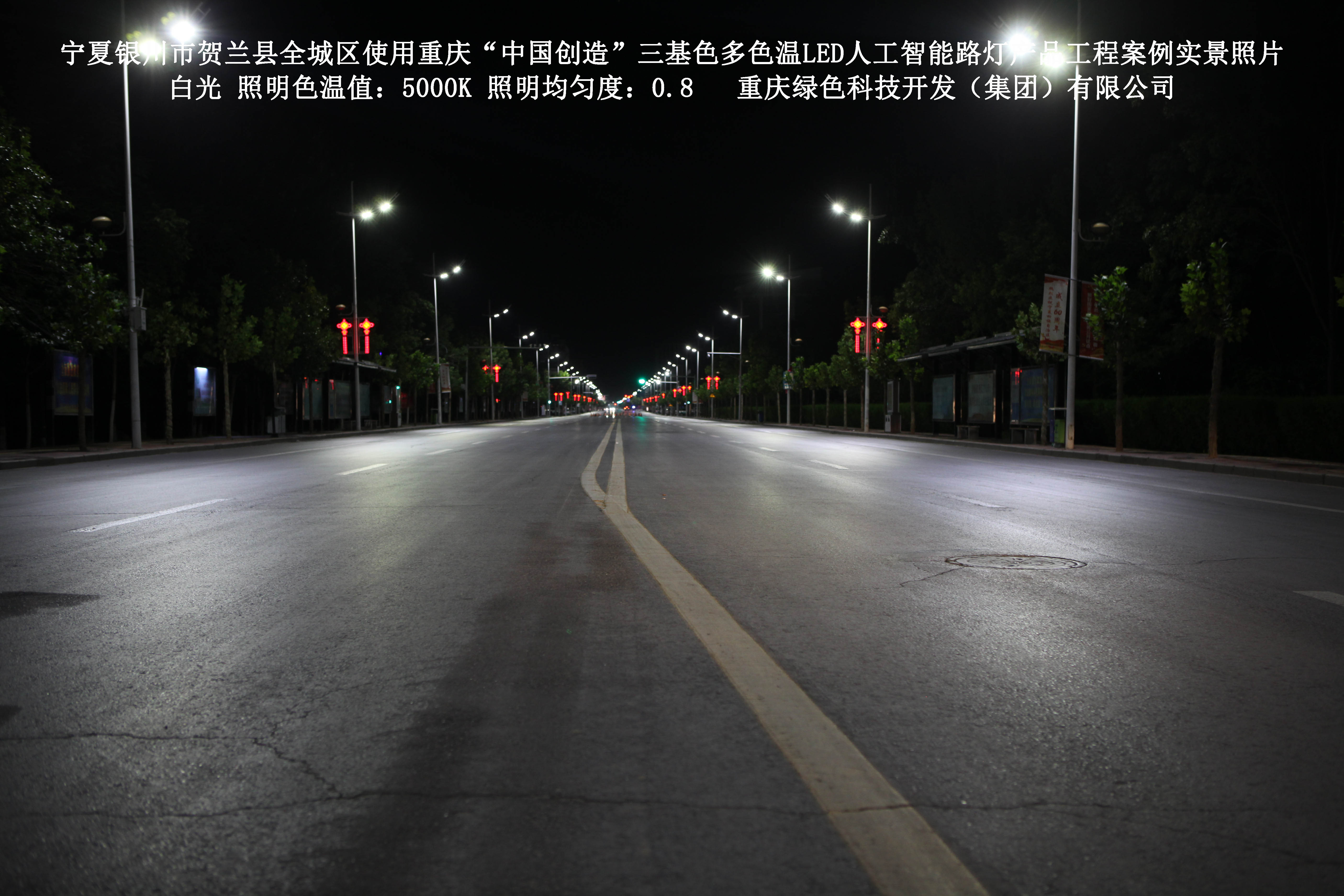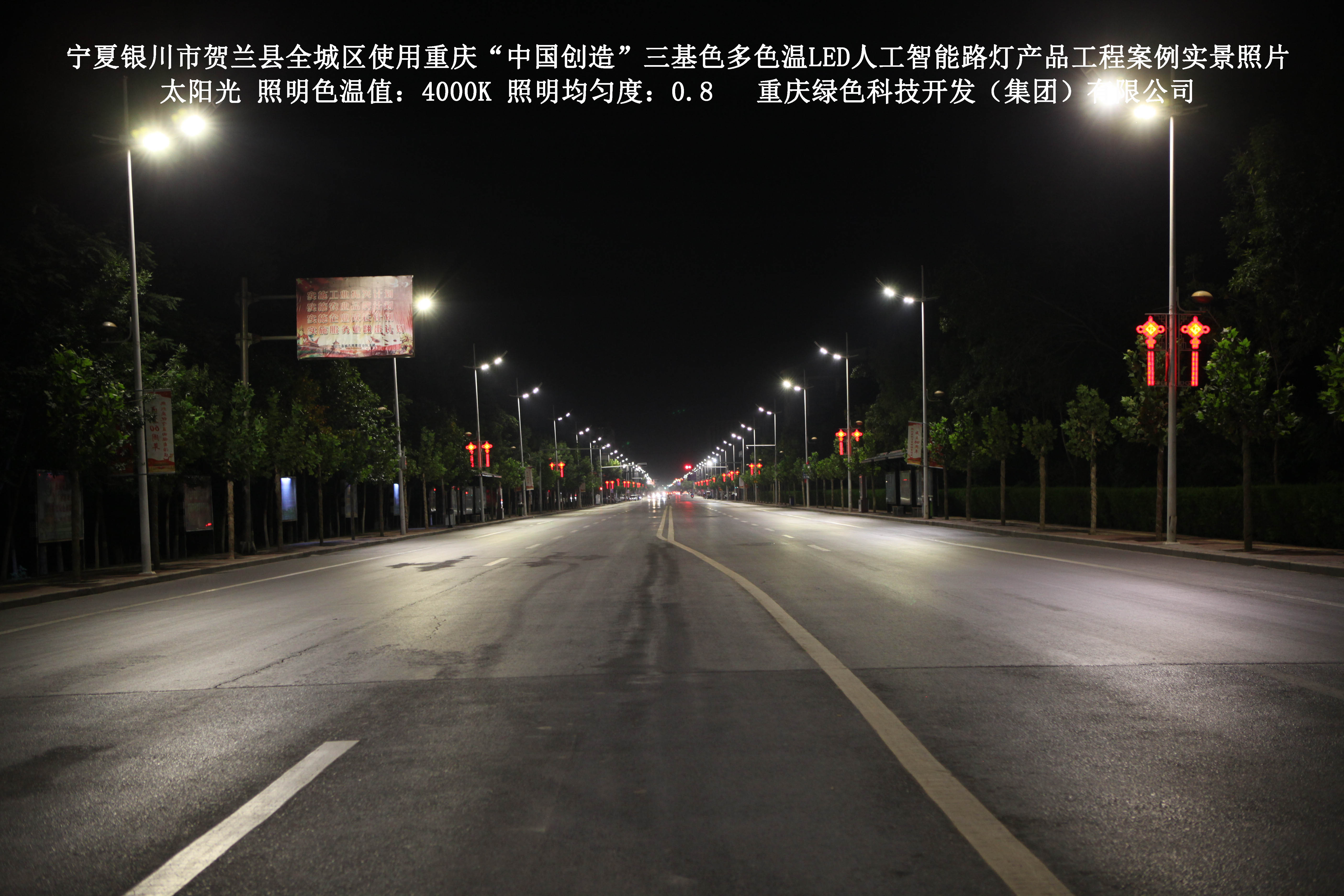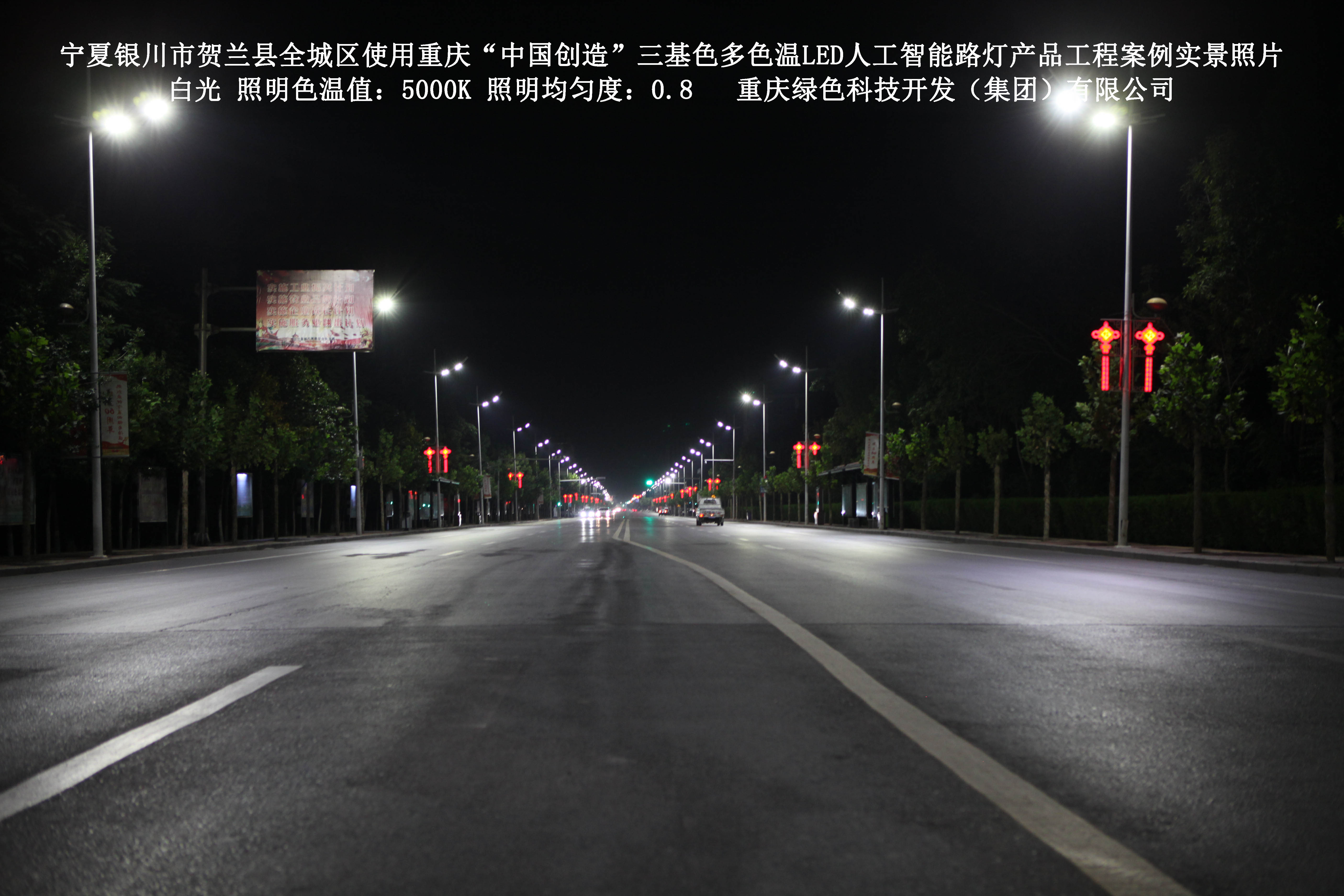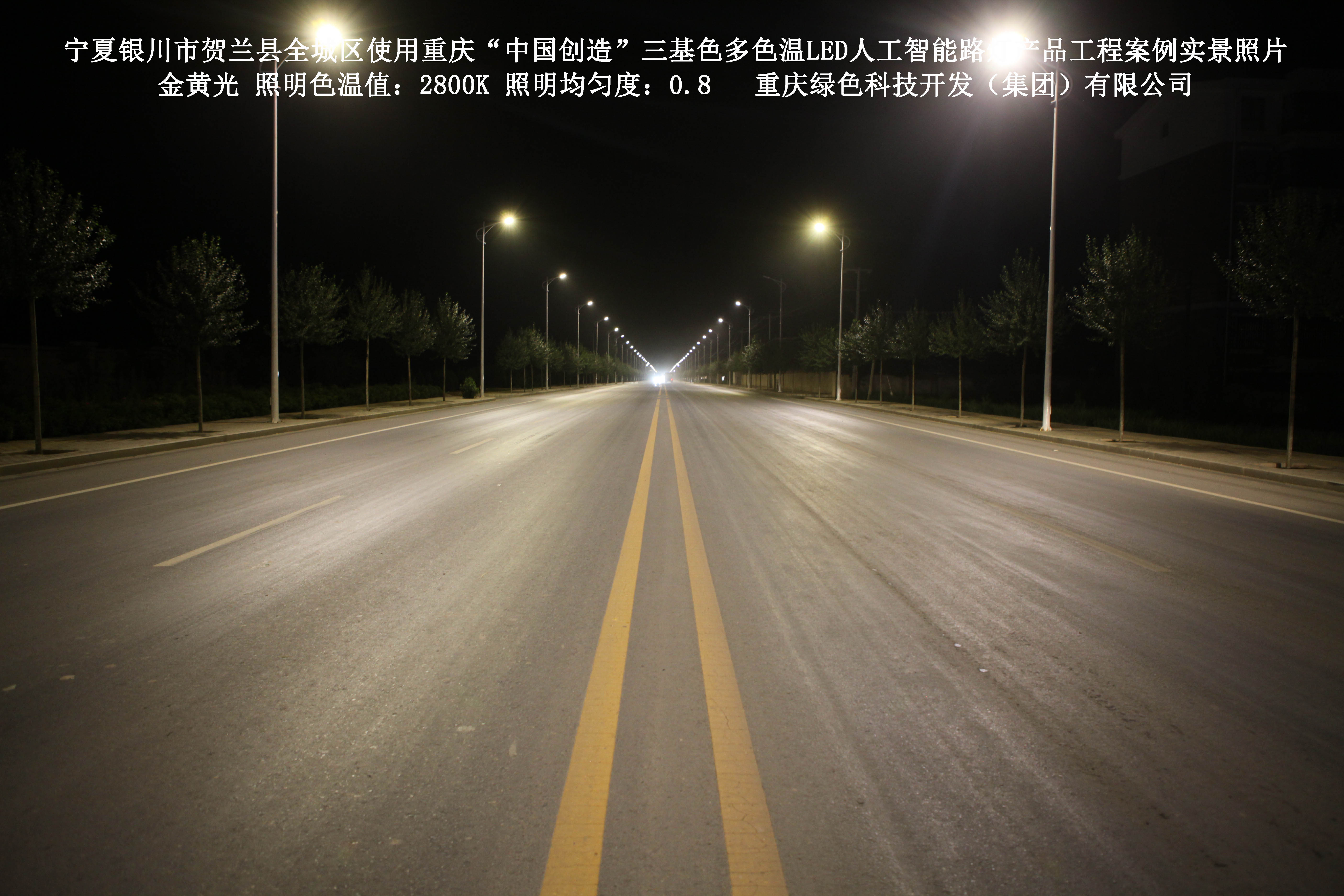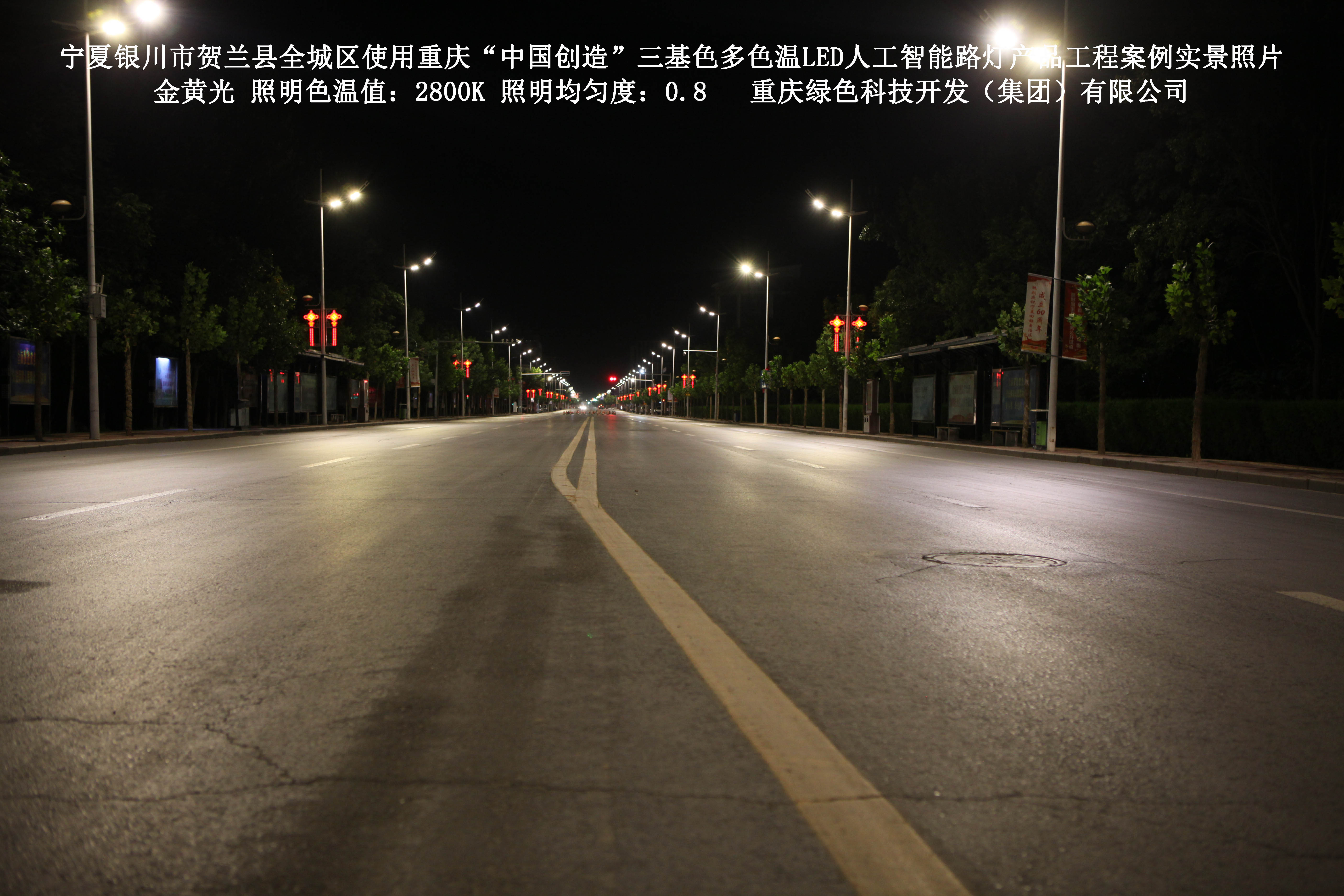 寧夏銀川市賀蘭縣全城區(qū)使用我司研造的重慶“中國創(chuàng)造”三基色多色溫