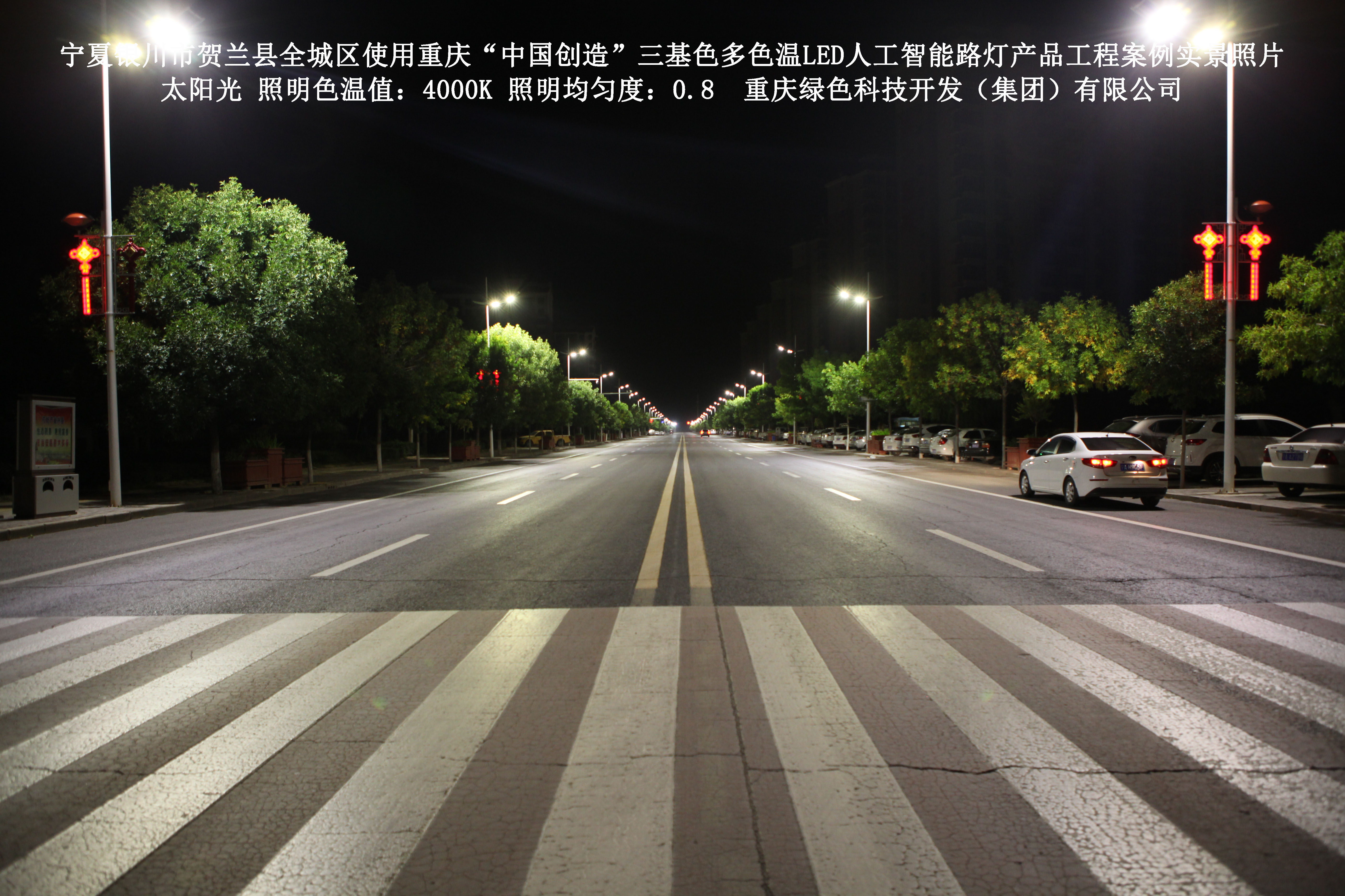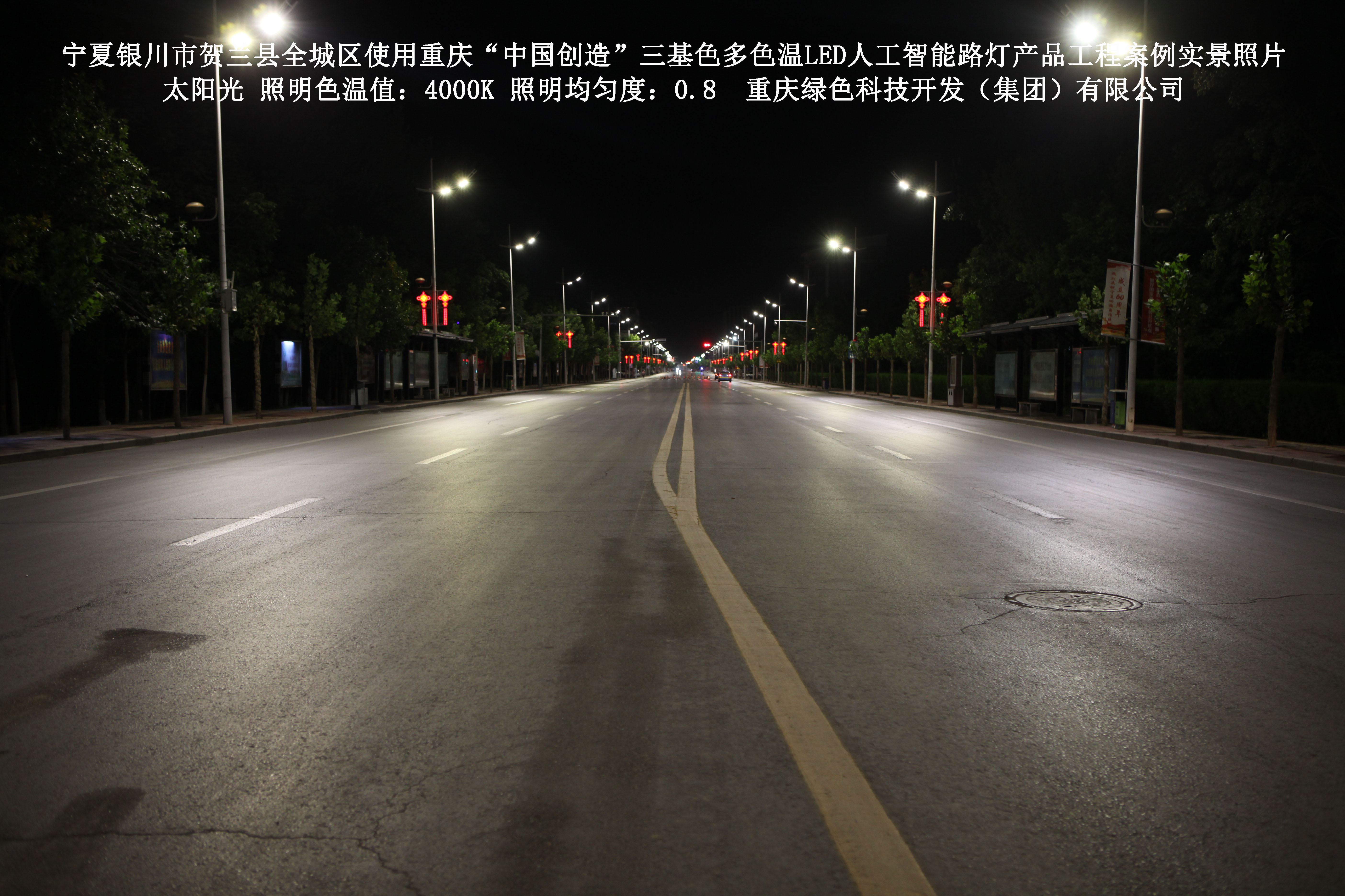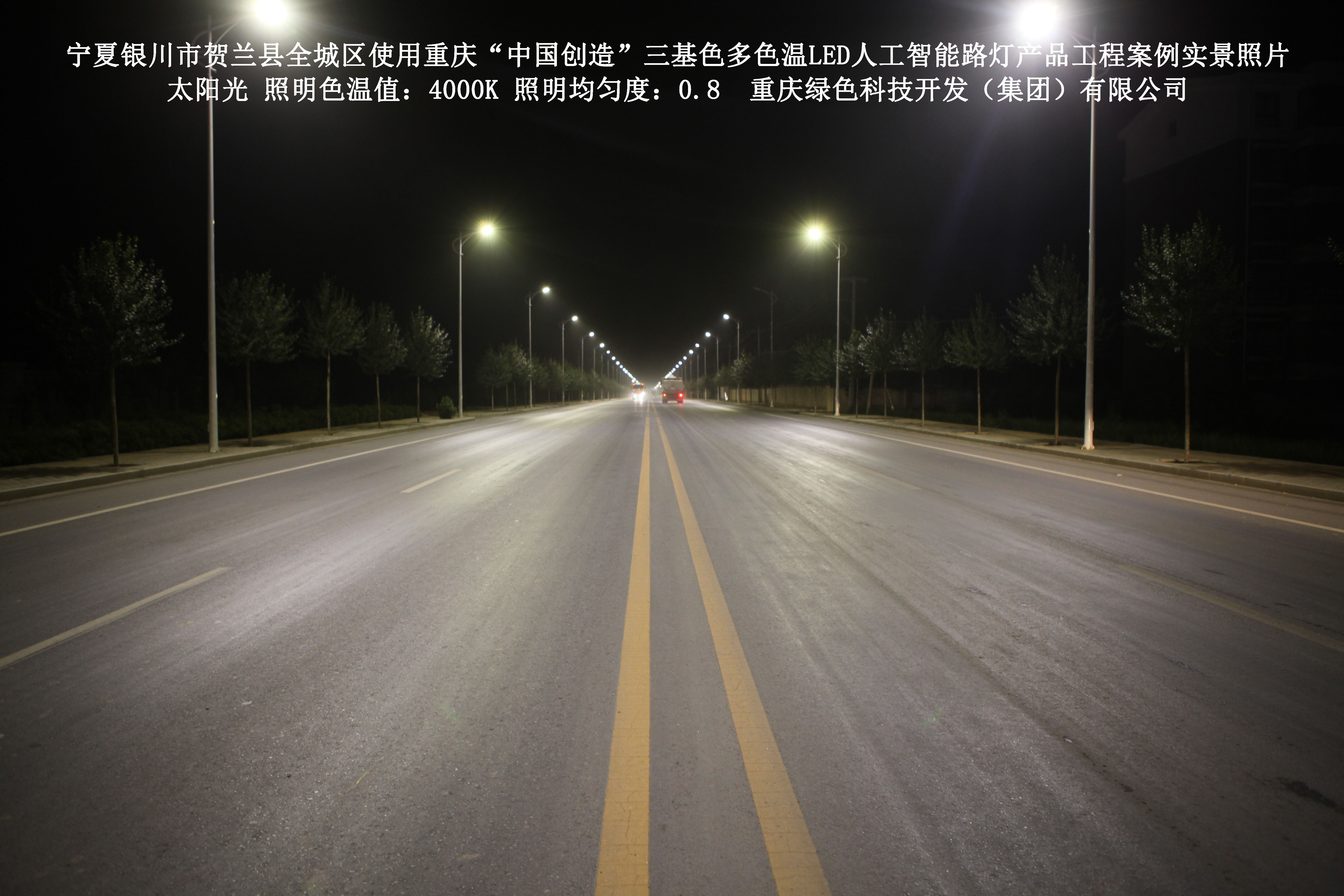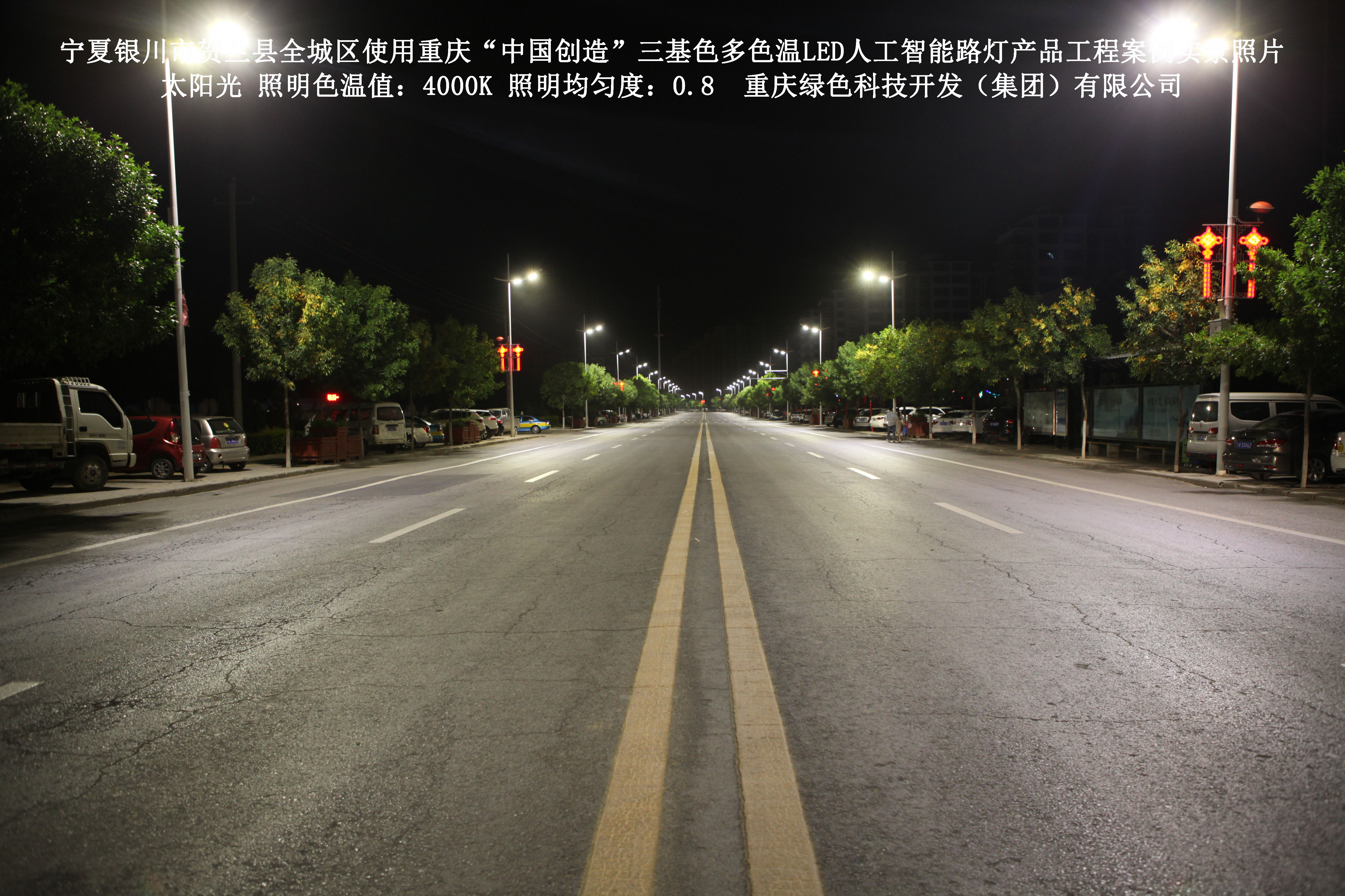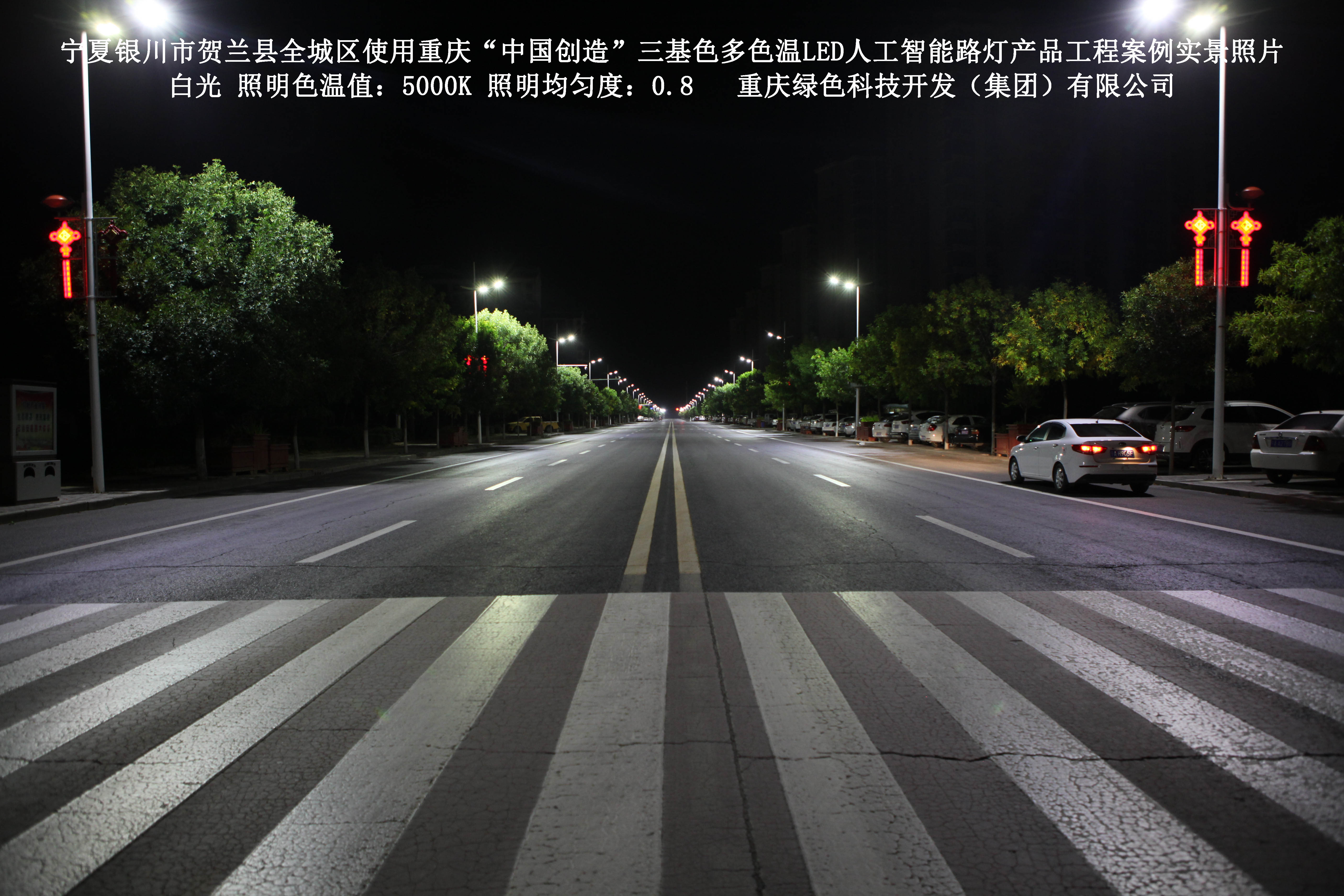 寧夏銀川市賀蘭縣全城區(qū)使用我司研造的重慶“中國創(chuàng)造”三基色多色溫