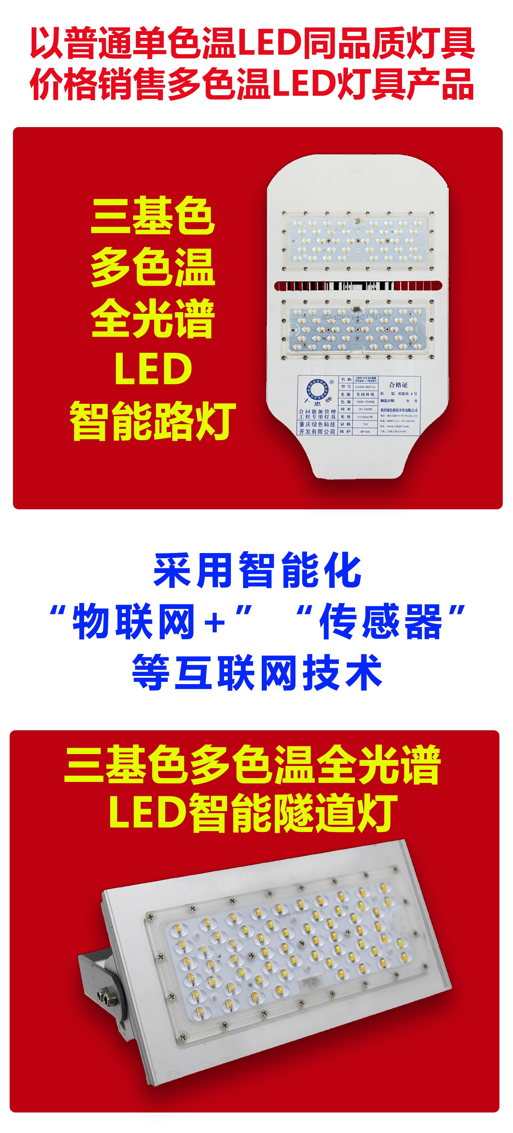 重慶“中國創(chuàng)造”三基色多色溫全光譜LED人工智能路燈技術(shù)特點(diǎn)介紹